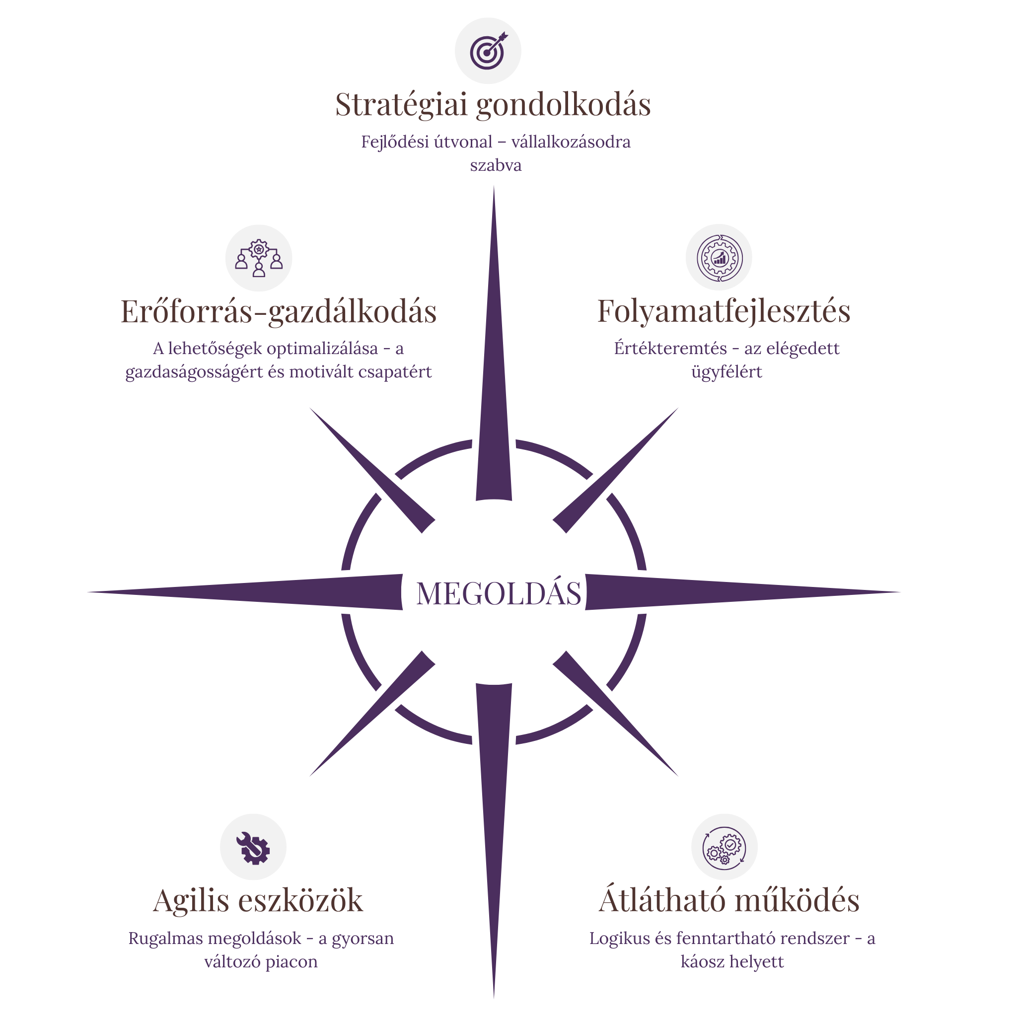 Több mint 15 éve dolgozom vezetőkkel és kisvállalkozókkal. Ezalatt azt tapasztaltam, hogy a legtöbb cég nem azért akadozik, mert ne lenne jó ötlete vagy csapata – hanem mert nincsenek meg a világos keretek.